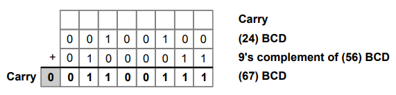 The addition is carried out as in normal binary addition and the sums are 10 0