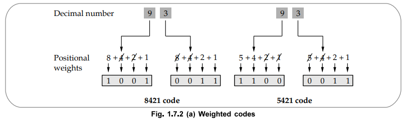 In weighted binary code each bit has a weight 8, 4, 2 or 1 and each decimal