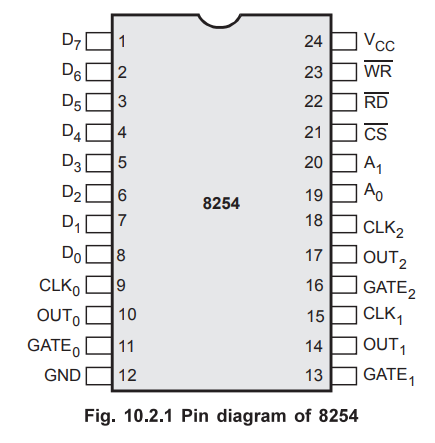 10.2.1 and Fig. 10.2.2 show the pin diagram and block diagram of 8253/54. The