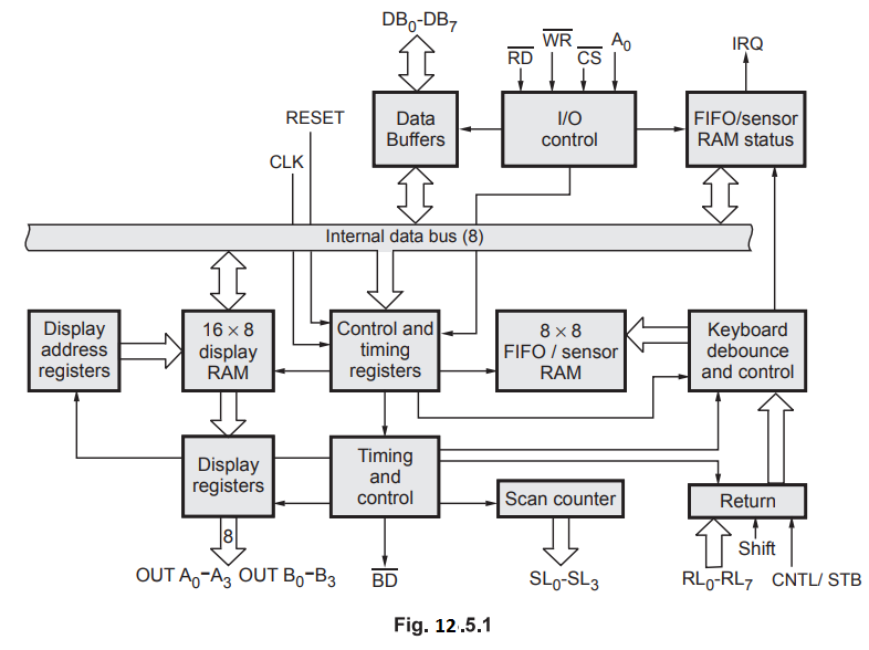 12.5.1 shows the block diagram of 8279. It consists of four main sections :