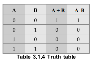 the sum of the complements. This is illustrated by truth Table 3.1.3.