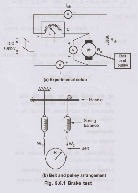 Another method of testing the d.c. motor is brake test method. This is a direct method of testing the motor. In this method, the motor is put on the direct load by means of a belt and pulley arrangement.
