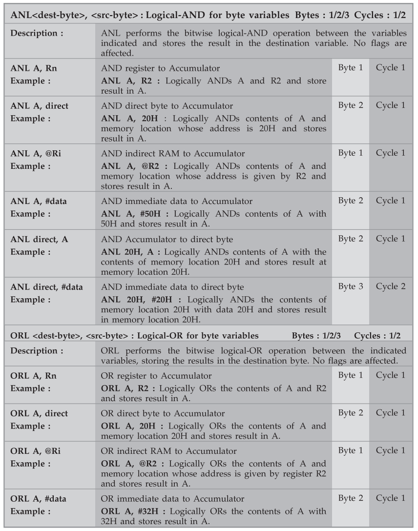 The instructions ANL, ORL, and XRL perform the logical functions AND, OR,