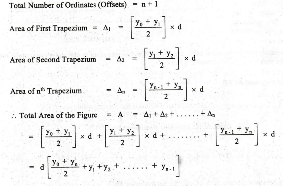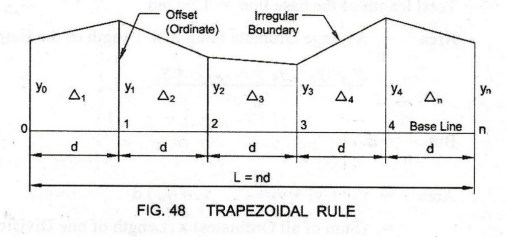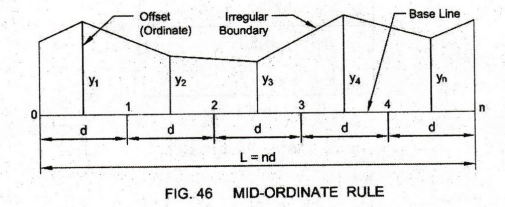 this method, the Ordinates (Perpendicular Offsets) yo, y1, y2, .... Yn are