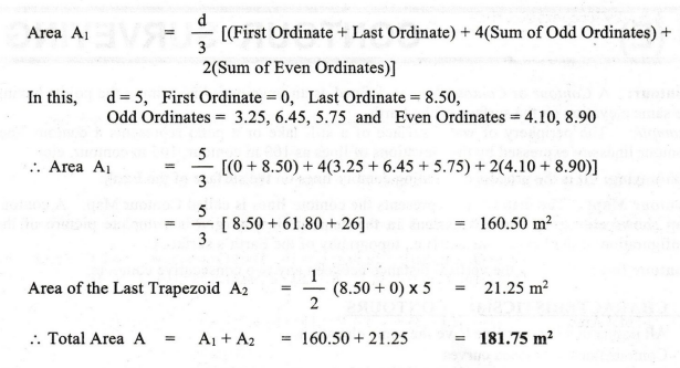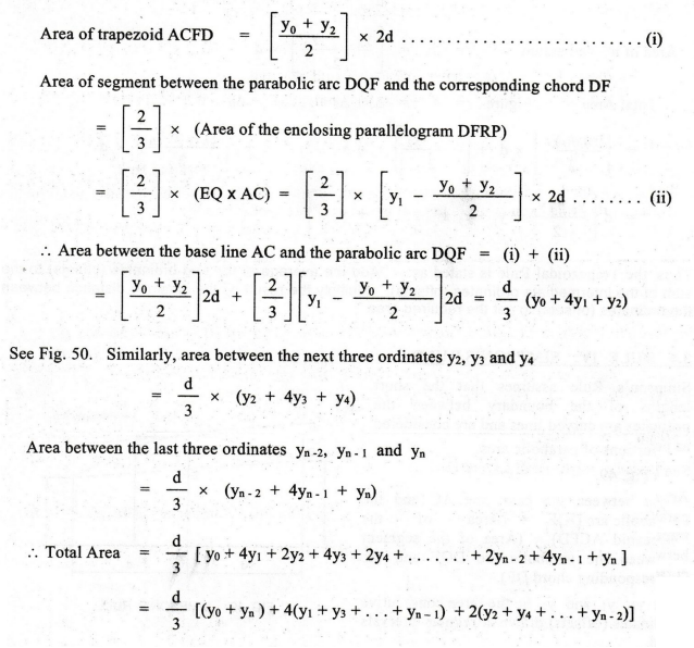 Area = d/3 [(First Ordinate + Last Ordinate) + 4(Sum of Odd Ordinates) + 2(Sum