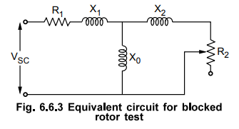 circuit for blocked rotor test is known in the Fig. 6.6.3. As rotor is still, s