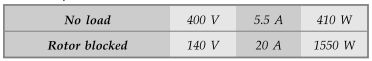tests on a 3-phase, Y-connectedc 10 kW, 400 V, 17 A, 50 Hz. 8-pole induction