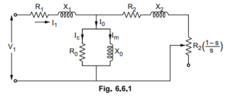 equivalent circuit of an induction motor is shown in the Fig. 6.6.1.