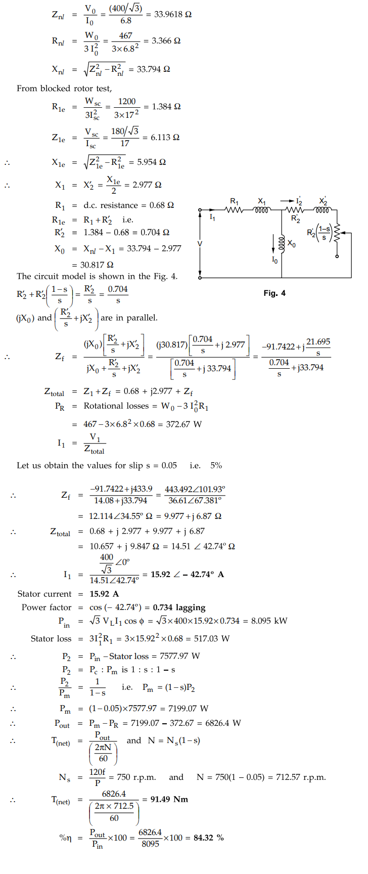 of the circuit model of the induction motor. Draw circuit model. Calculate : i)