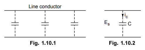 Unlike resistance and inductance, the capacitance of transmission line is also uniformly distributed along the whole length of the line. It may be treated as a uniform series of capacitors connected between the conductors as shown in the Fig. 1.10.1 and Fig. 1.10.2.