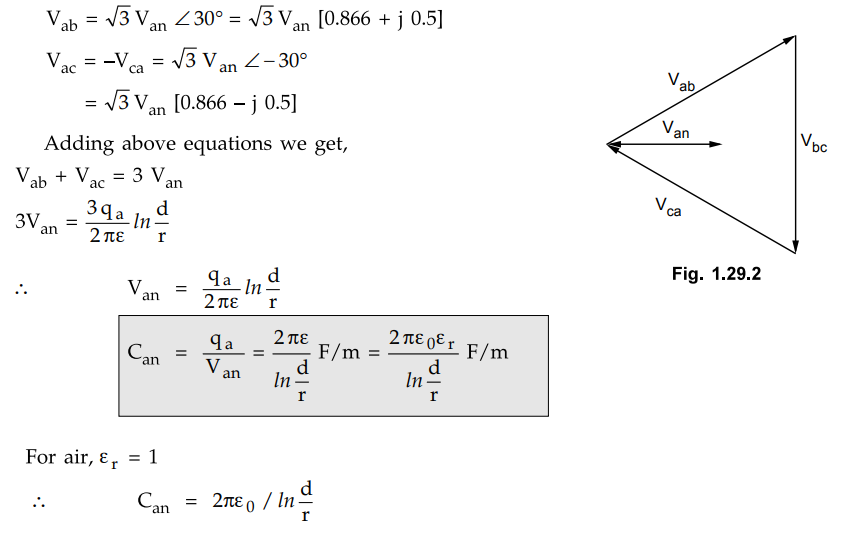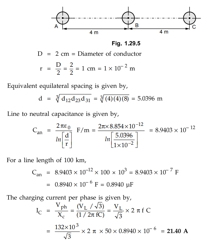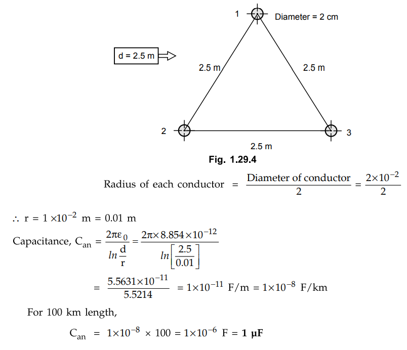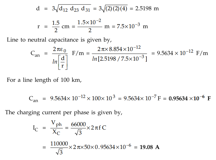 Transmission and Distribution: Unit I: Transmission Line Parameters : Tag: : Diagram - Examples - Capacitance of a Three Phase Line with Equilateral Spacing
