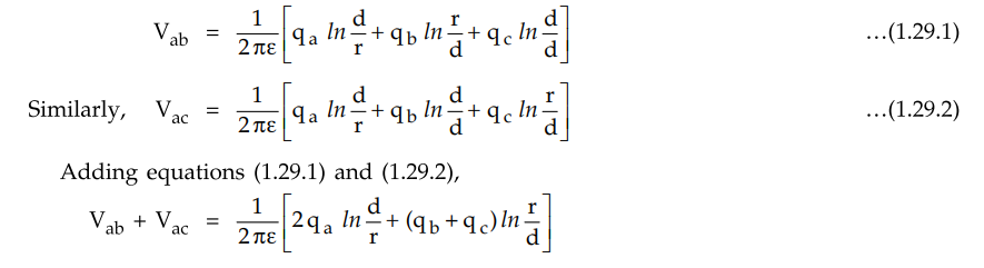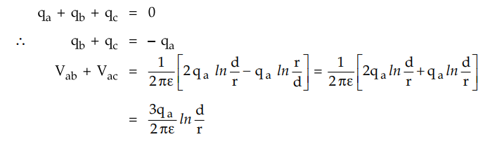 Consider the three conductors a, b and c of 3 phase overhead transmission line having the charges qa, qb and qc respectively