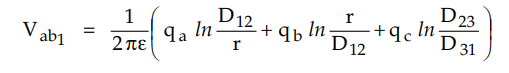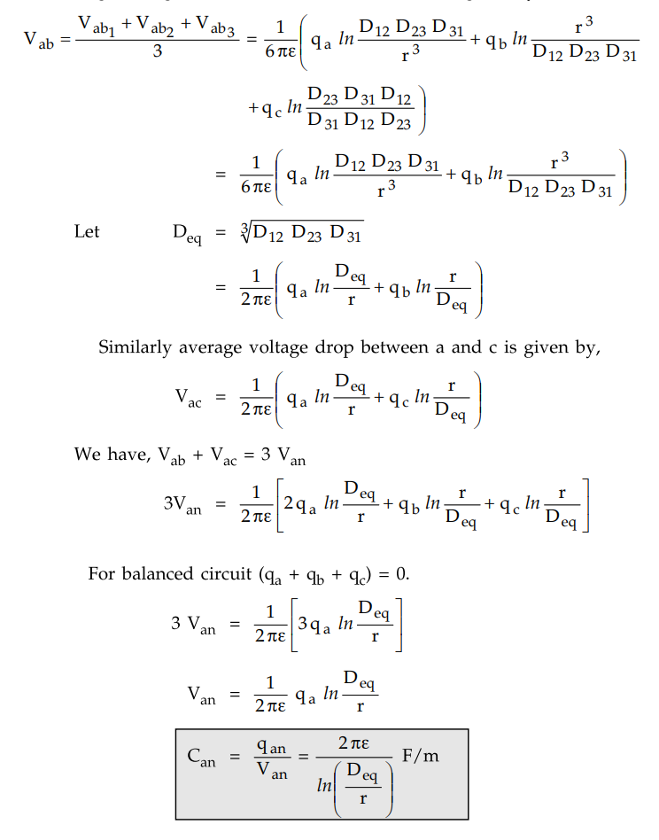 The calculation of capacitance in case of conductors in three phase system which are not equally spaced is difficult. If the line is untransposed the capacitances of each phase to neutral is not same.