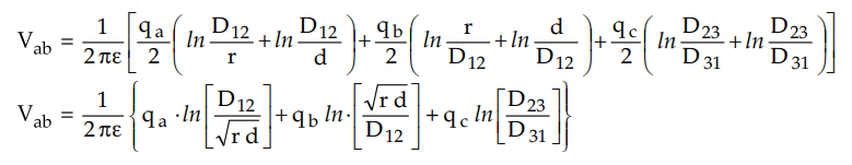 expression we have written for 3 phase line with unsymmetrical spacing.
