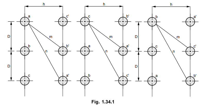 Transmission and Distribution: Unit I: Transmission Line Parameters : Tag: : - Capacitance of Three Phase Double Circuit with Unsymmetrical Spacing but Transposed