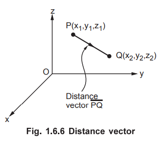 Then the distance or the displacement from P to Q is represented by a distance vector and is given by,