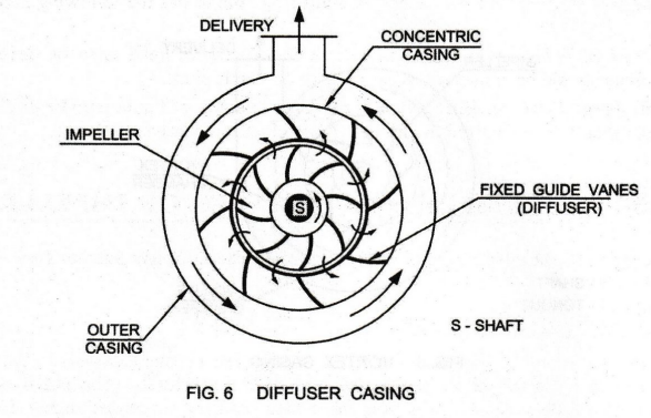 Uses: Due to the above disadvantage and due to improvements in the volute casing, both are equally efficient these days. Diffuser, however, still finds applications in multistage high pressure pumps.
