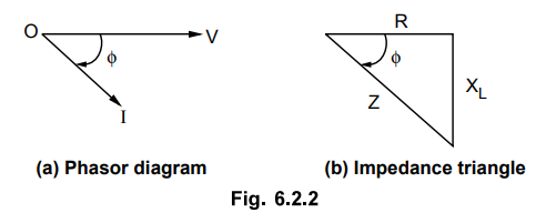 phasor diagram is shown in the Fig. 6.2.2 (a). The current I lags voltage V by