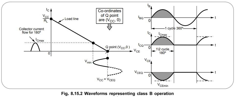 The current and voltage waveforms for a class B operation are shown in the Fig.