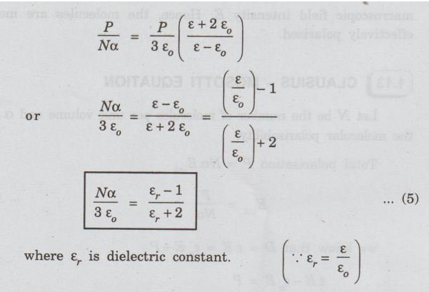 equation (5) is Clausius - Mosotti relation which relates the dielectric