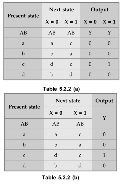 or simply state table. Table 5.2.2 (a) shows the state table for the state