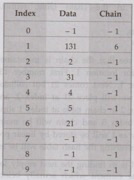 value -1 in the hash table and chain table indicate the empty location. The