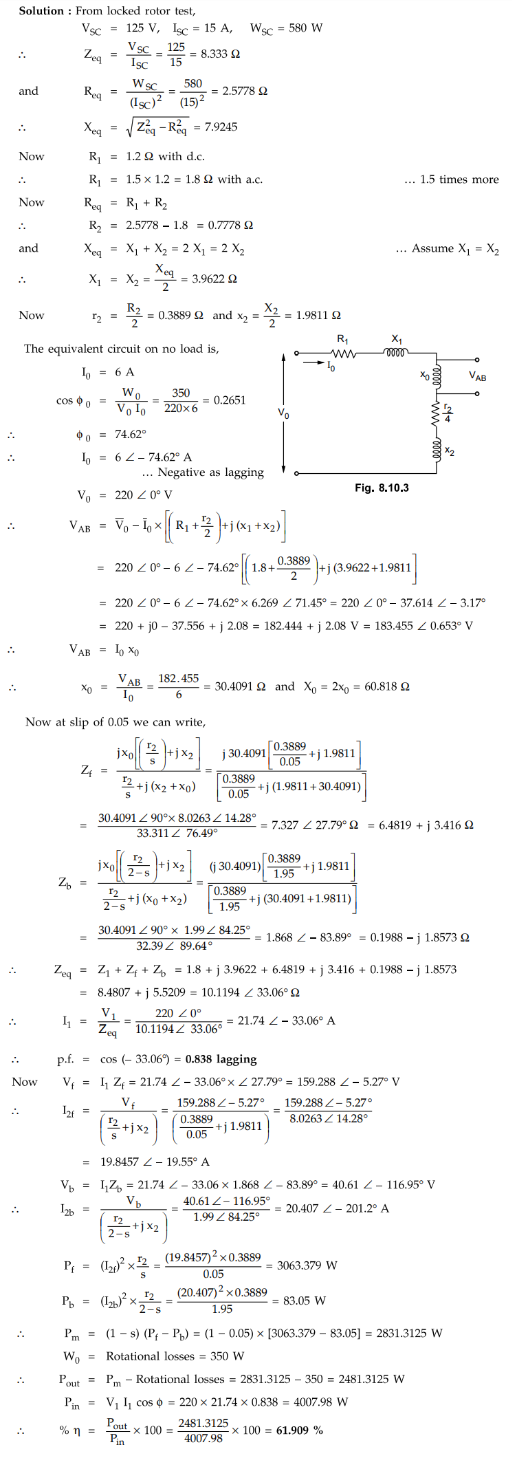 8.10.1 A 220 V, 1 phase, induction motor has following