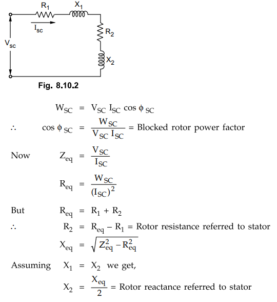 parallel with the rotor. Thus the equivalent circuit for blocked rotor test is