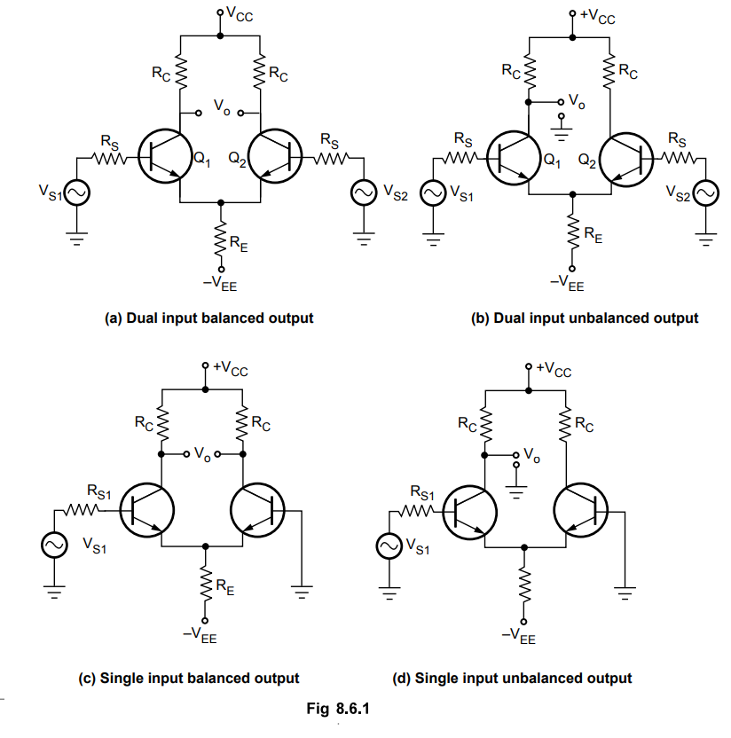 dual input, unbalanced output differential amplifier is shown in the Fig. 8.6.1