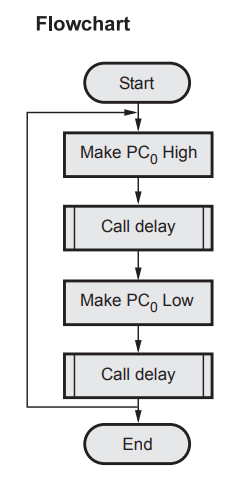 Write a program to blink Port C bit 0 of the 8255. Assume address of control