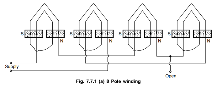 direction only. Due to this, 8 poles get formed as shown in the Fig. 7.7.1 (a).
