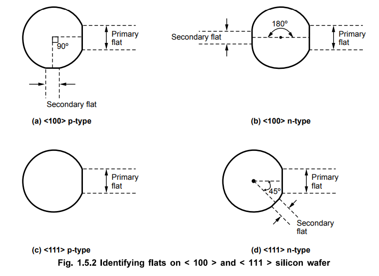 (< 100 > or < 111 >) and conductivity (p or n) of the wafer.