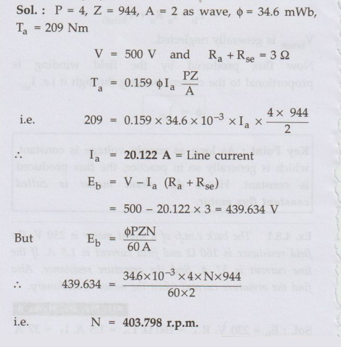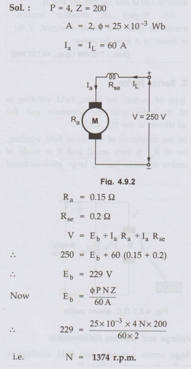 Electrical Machines: Unit III: a. D.C. Motors : Tag: : Voltage and Current Relationship, Solved Example Problems - D.C. Series Motor
