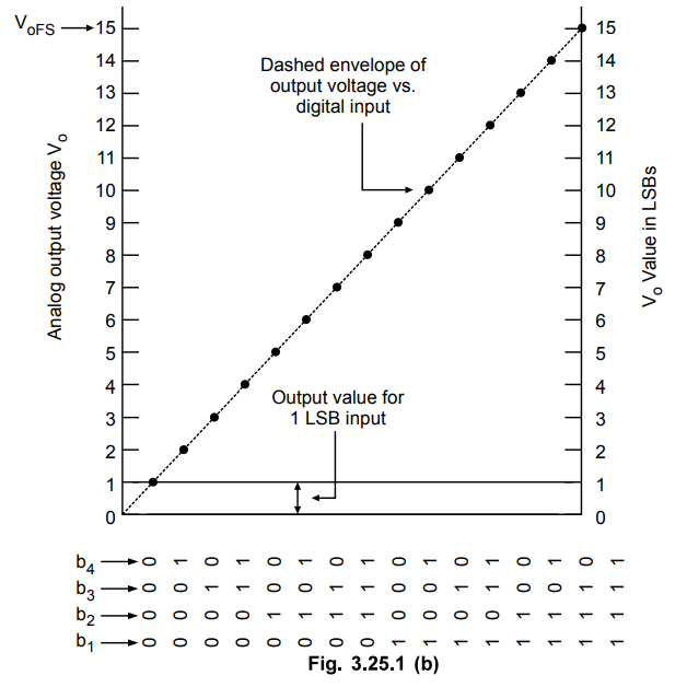 3.25.1 (b) shows analog output voltage Vo is plotted against all 16 possible