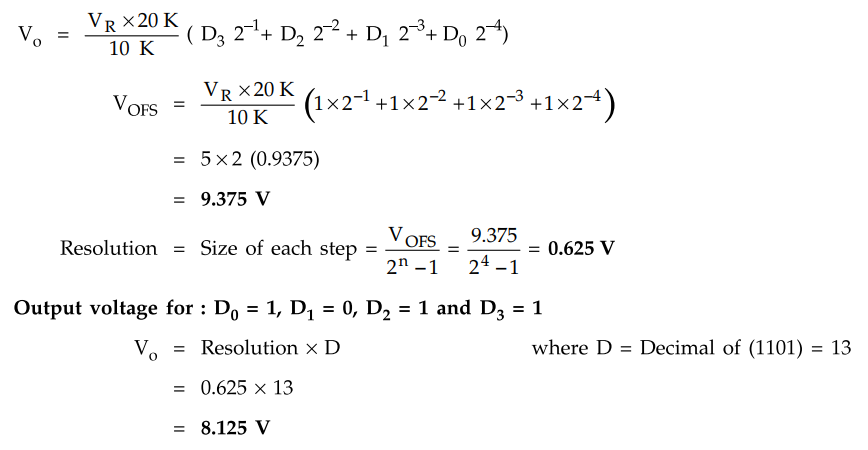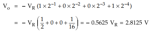 the output voltage is VR/8 which is equivalent to binary input 001. For binary