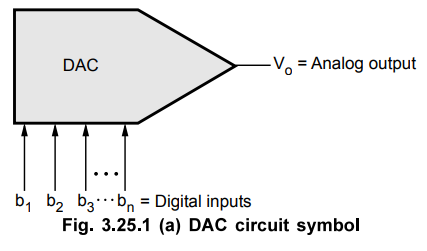 A DAC (Digital to Analog Converter) accepts an n-bit input word b1, b2, b3, ... bn in binary and produce an analog signal proportional to it.