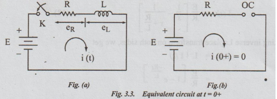 equivalent circuit at t=0+ is shown in fig. 3.3 (b). The inductor is shown as