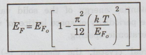 energy EF at any temperature T in terms of Fermi energy at 0 K is