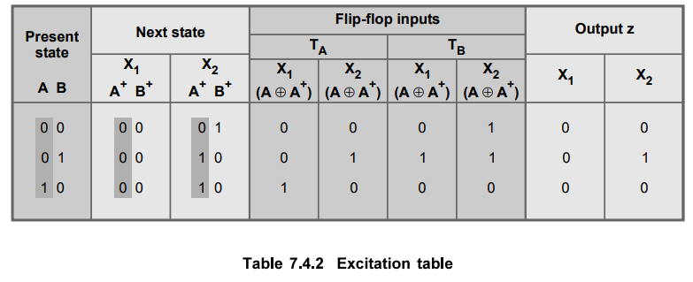 Fig. 7.4.1 (a) shows the state diagram for the given circuit. It is important