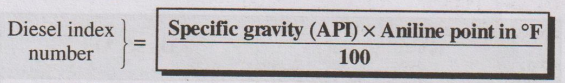 Diesel index number = Specific gravity (API) × Aniline point in °F / 100