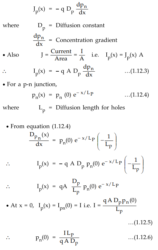 In a p-n junction the total current at the junction (x = 0) is given by,
