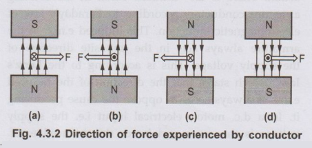 conductor placed in the magnetic filed, shown in the Fig.4.3.2 (a),(b),(c) and