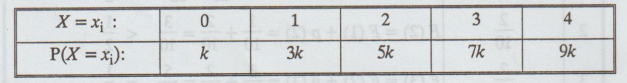 2P [X = 1] = 3P (X = 2] = P(X = 3] = 5P (X = 4] [X = 2] = k ....(1)