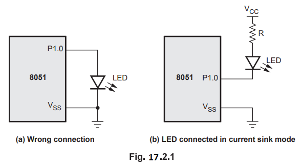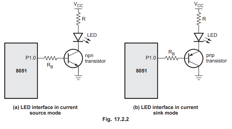 sourcing. The Fig. 17.2.2 shows the LED interface using driver transistor.