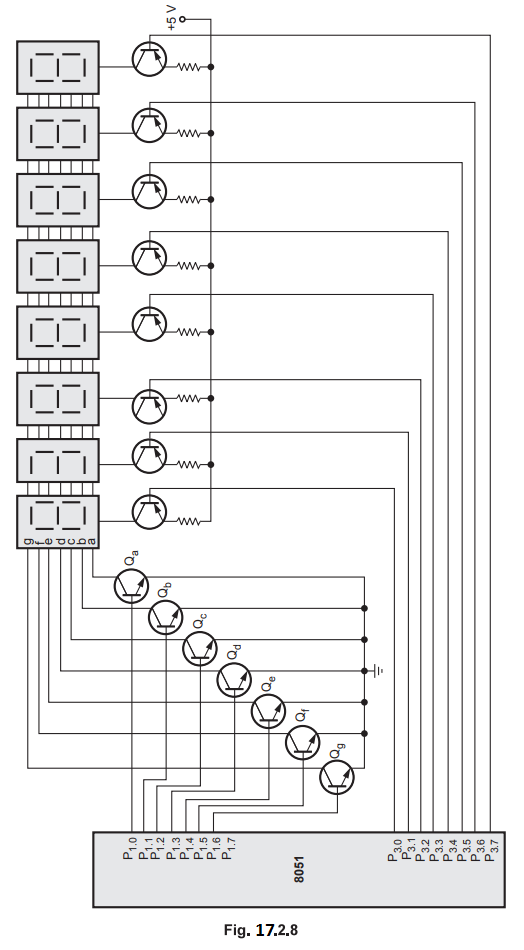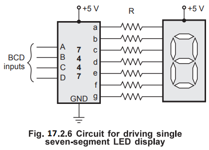 17.2.6 shows a circuit to drive a single, seven-segment, common anode LED