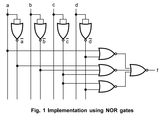 can implement OR-AND logic by NOR-NOR logic as shown in Fig. 1.