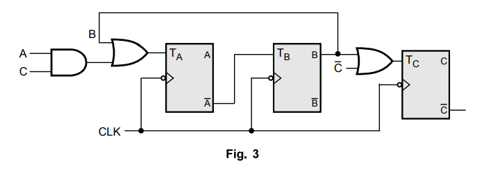 3, 4, 5 repeatedly. Use T flip-flops for your design. [8]