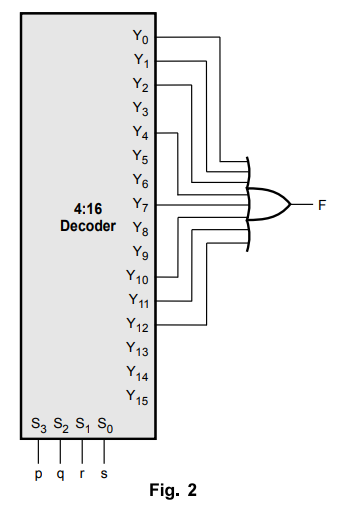 i) Implement the function F(p, q, r, s) = X(0, 1, 2, 4, 7, 10, 11, 12) using