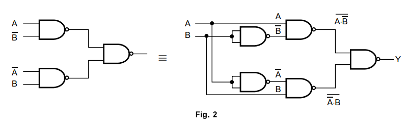 can implement AND-OR logic by using NAND-NAND logic as shown in Fig. 2.