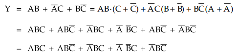 Convert the given expression in canonical SOP form Y = AB + A'C + BC'.